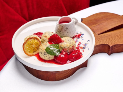 Подаються з полуничним соусом